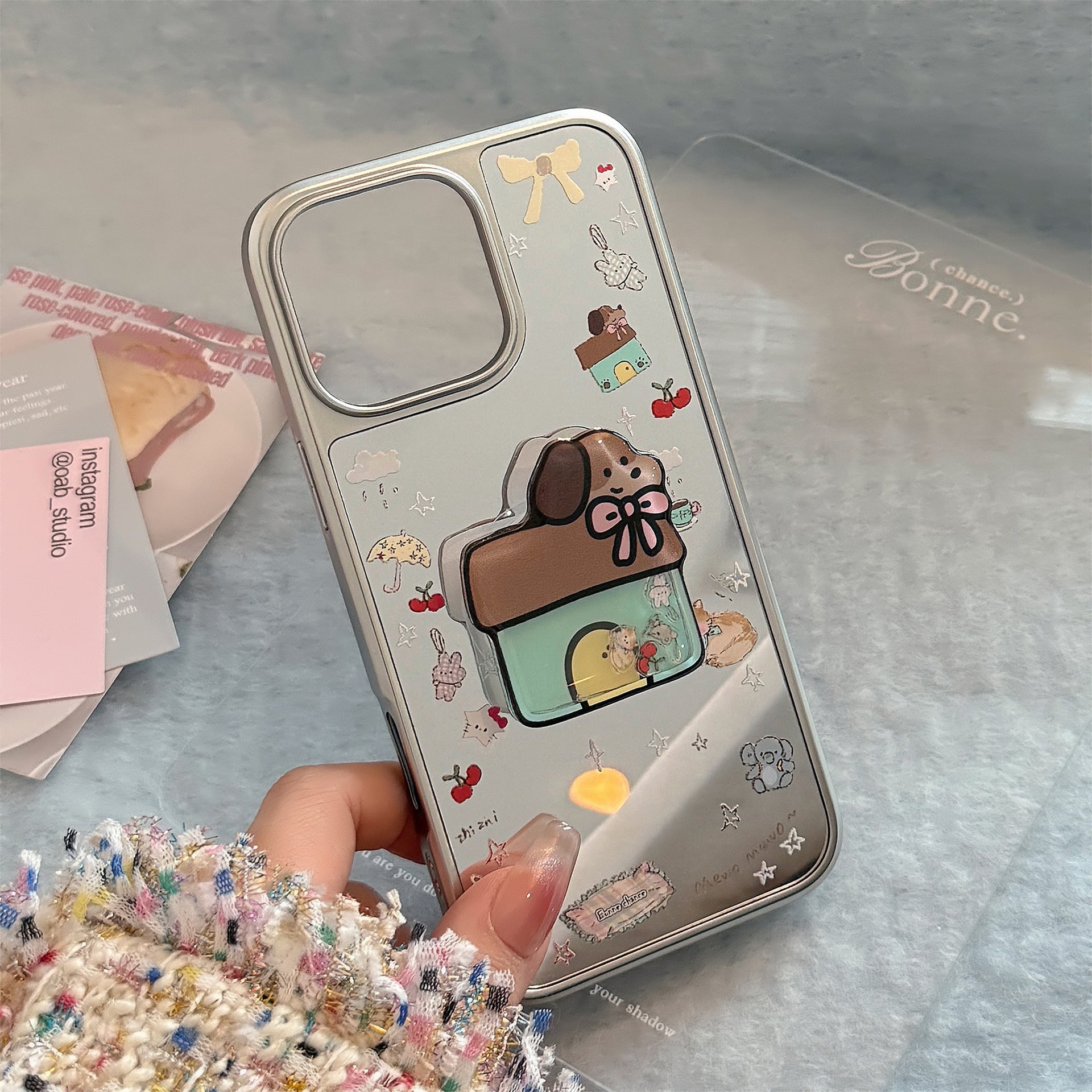 Korean ins electroplated mirror surface is suitable for 16 Apple 15Pro Max mobile phone case iphone17 Puppy Shake Music 13